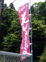 [右] 局柵の「花しょうぶ祭」ののぼり。