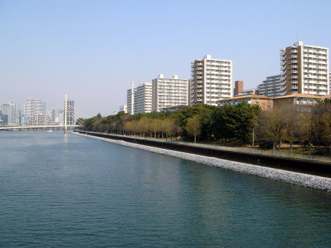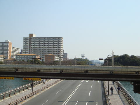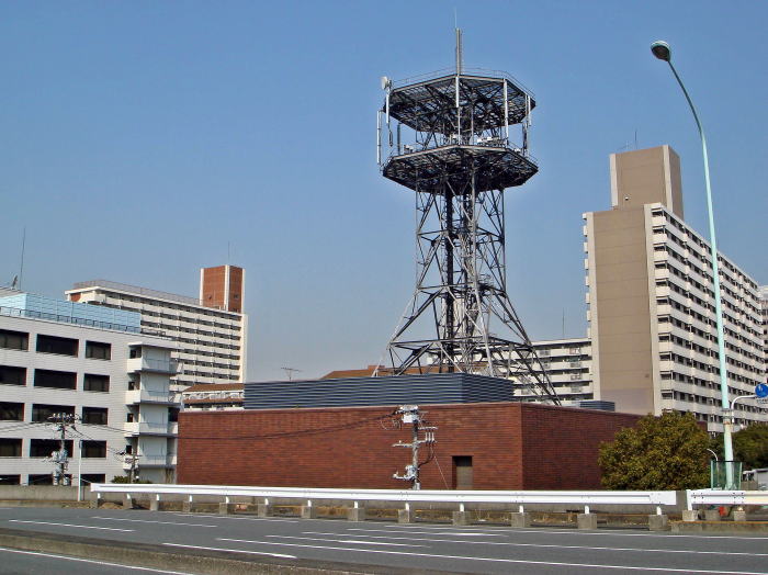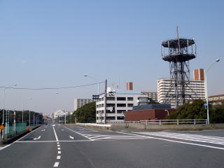 東京モノレール「大井競馬場前」駅から見える大井埠頭と鉄塔。