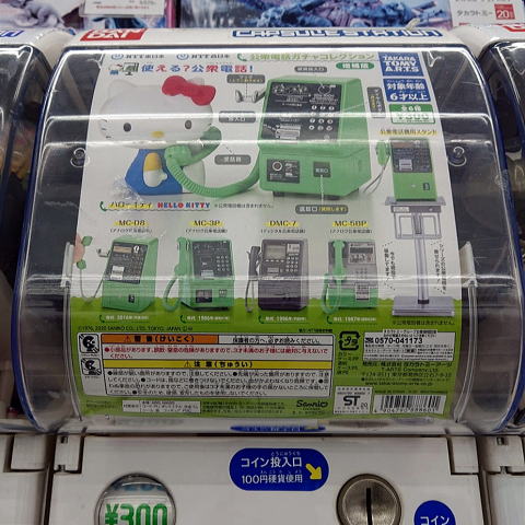 「デュエットホン」「金色の公衆電話機」の全6種(1回300円)。