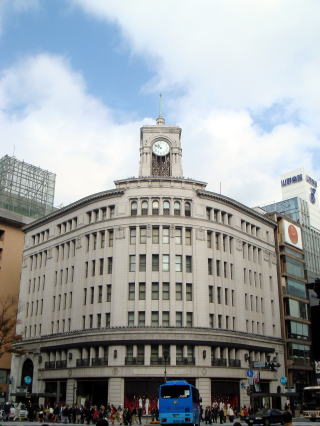 銀座のシンボル和光の時計塔(右)などがあり、ものすごく華やかで賑やかでした。