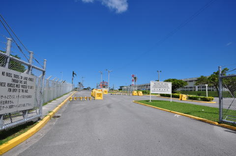 ビル程近くの米軍施設「キャンプキンザー」のゲート。