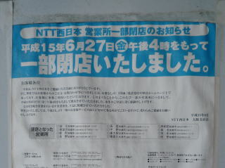平成15年に大阪府内の以下の窓口が閉鎖されたようです。