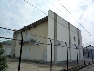 交換機は、左側の建物内にあると思われます。