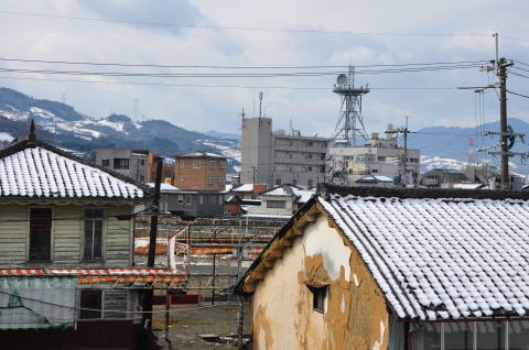 紀ノ川越しに見える鉄塔が美しい電話局です。