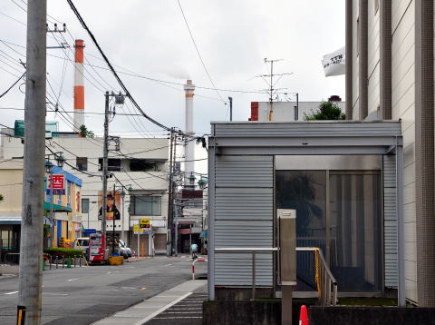 局前からは製紙工場の煙突が見えました。