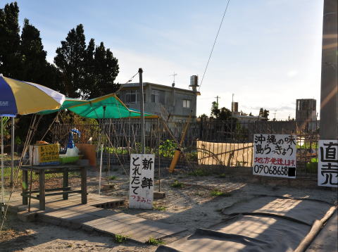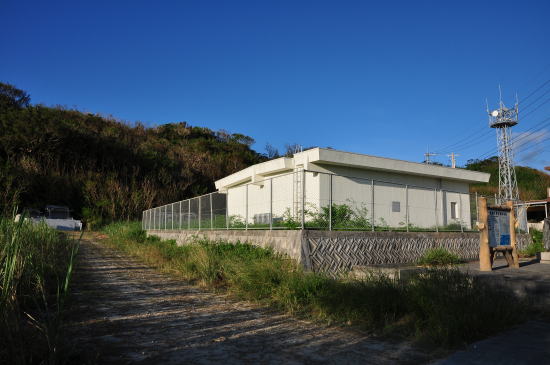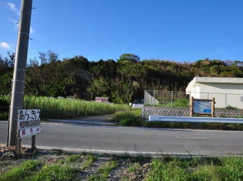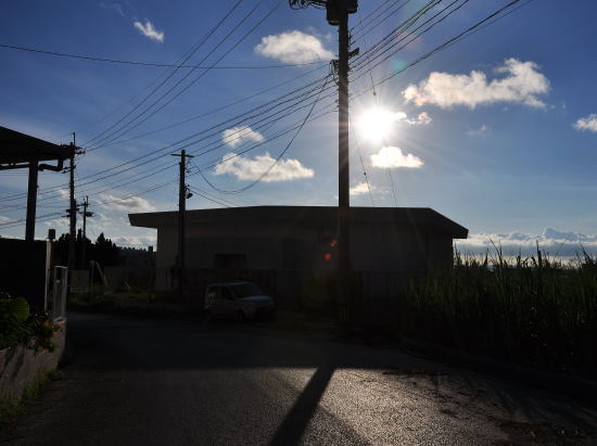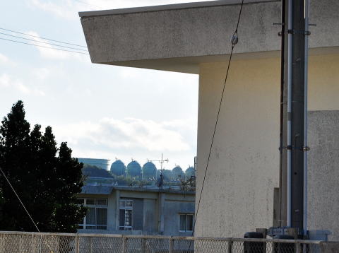 局前から見えた平安座島の沖縄石油基地のガスタンク群。