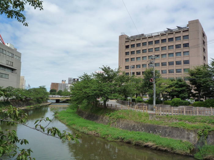 ビル前から、松川越しに見えた