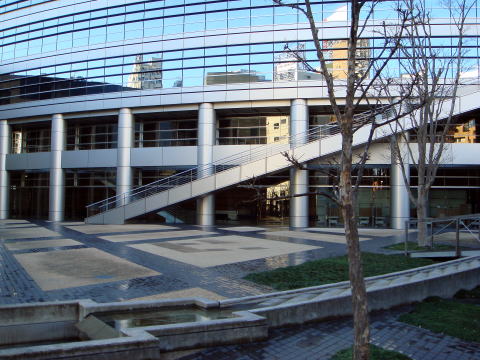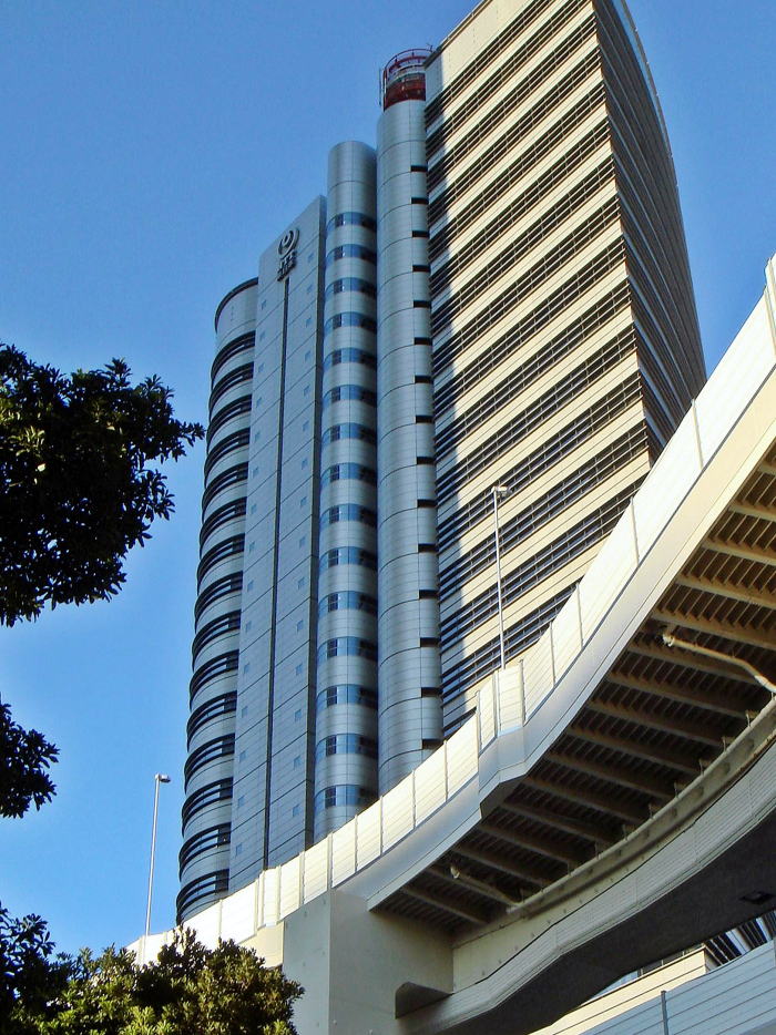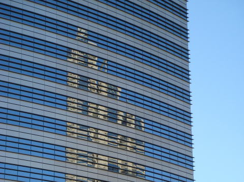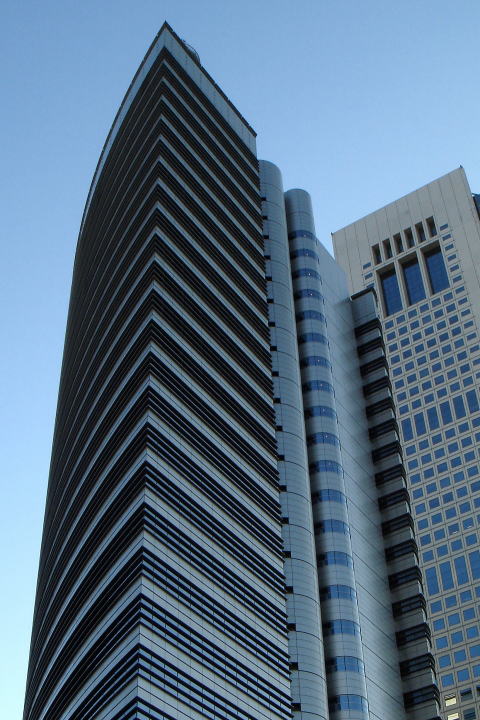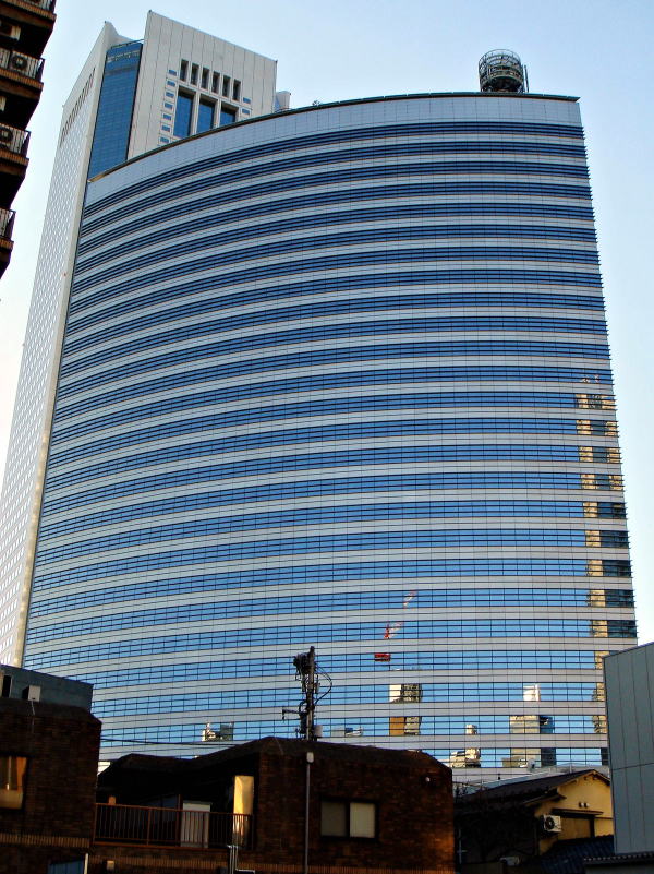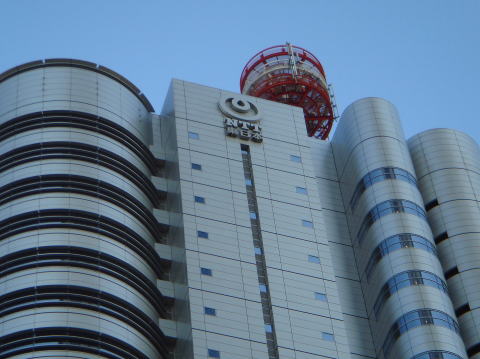 メカニカルなデザインが特徴的なNTT東日本本社ビル。