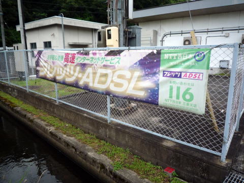 柵には、フレッツADSLの幟がありました。