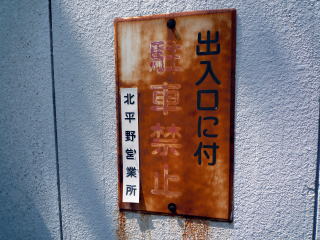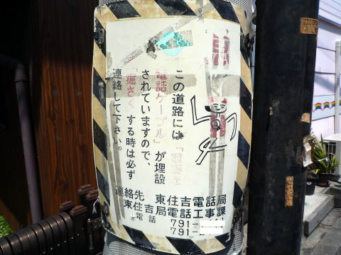 局近くの「電話ケーブル注意看板(電電公社マーク有)」。