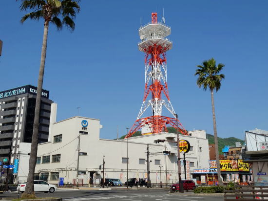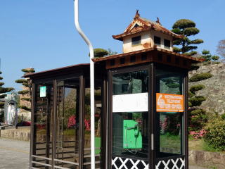 三原城跡と三原駅前の公衆電話