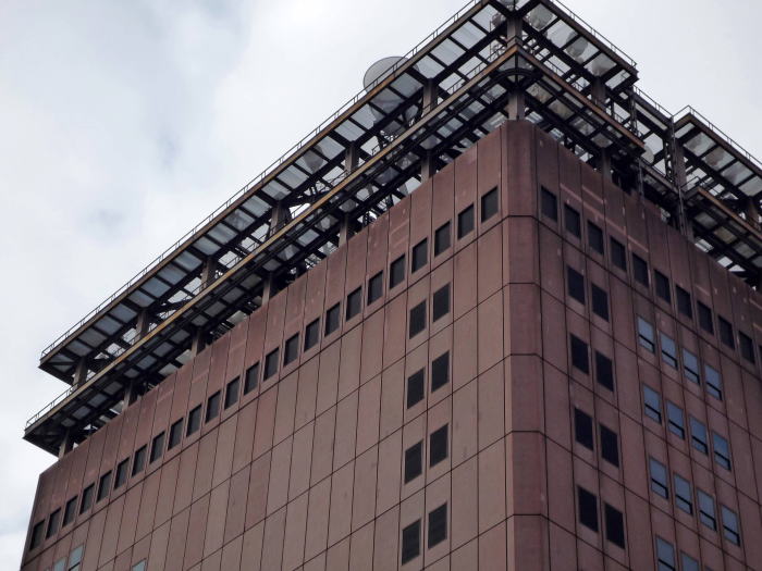 ドコモ・地域会社・NTTコムと、3社のビルが堂々と並び建つ姿は壮観。