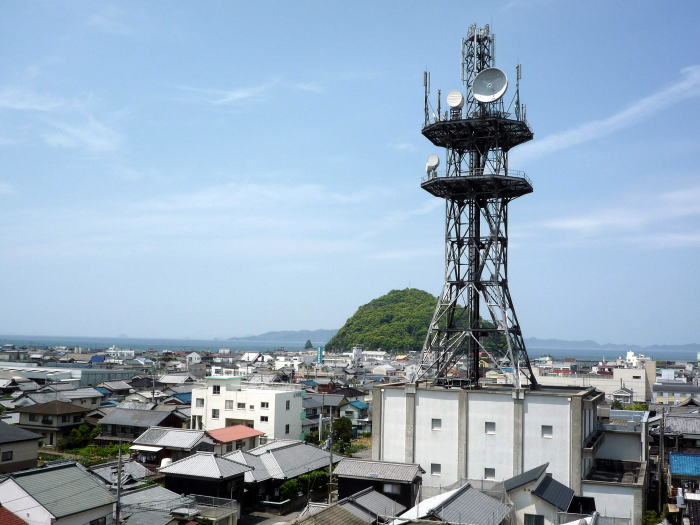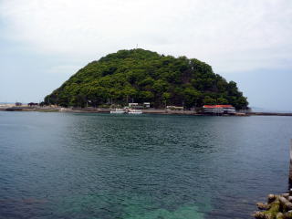 局程近くの北条港沖合いにぽっかり浮かぶ鹿島。