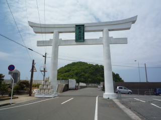 後ろに見える円錐形の島は、「北条鹿島」です。