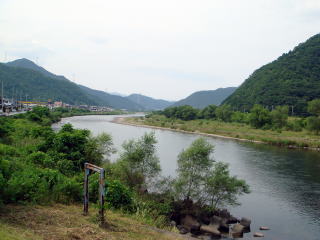 [右]局前を流れる揖保川。