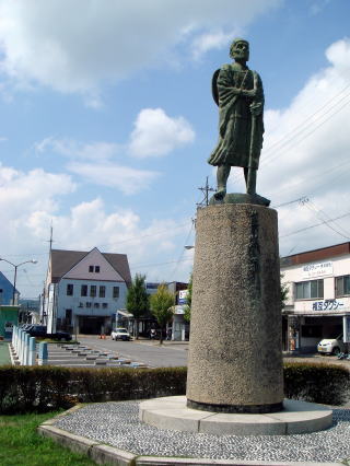 [左] 近鉄伊賀駅前の「芭蕉翁」像。見つめる先に局があります。