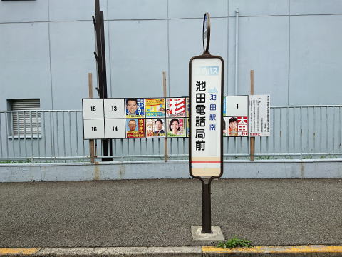 局前のバス停は「池田電話局前」