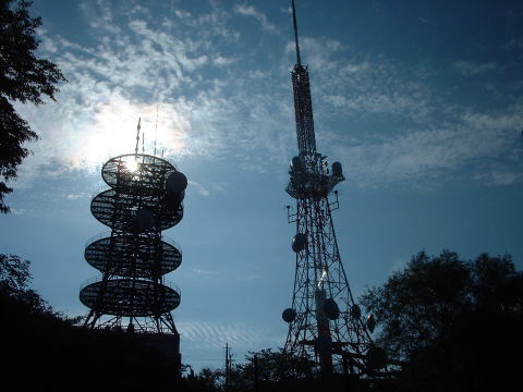 大阪府と奈良県の県境にある生駒山頂にそびえる無線中継所です。