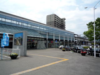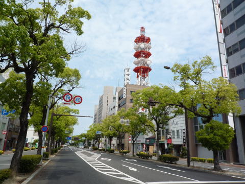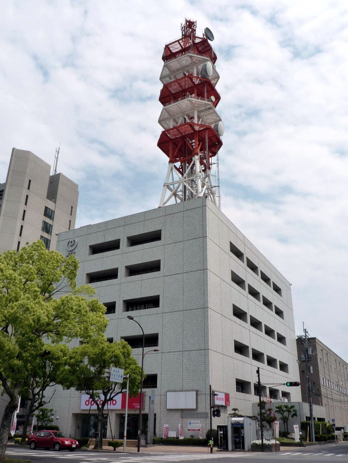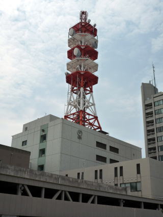JR今治駅と、駅前から見えた鉄塔。