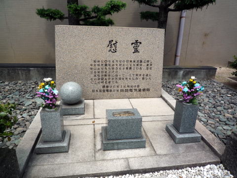 本局舎新築に当って、17周年を迎えその御霊を慰め冥福を祈るため、謹しんでこの碑を建てる。昭和36年12年26日 日本電信電話公社四国電気通信局