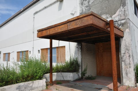 一部焼け跡が残る、損壊が激しい局舎。