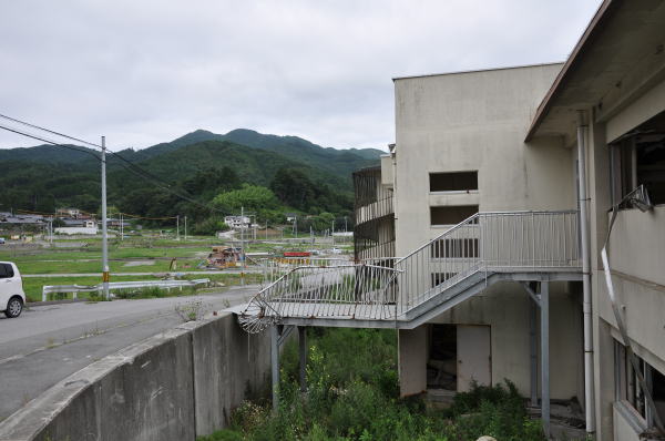 越喜来小学校は校舎3階まで押し寄せた津波により甚大な被害を受けましたが、2階から公道へと直接つながる非常通路(2010年12月完成)によって避難時間が短縮され、児童71人と教職員は全員ご無事だったそうです。