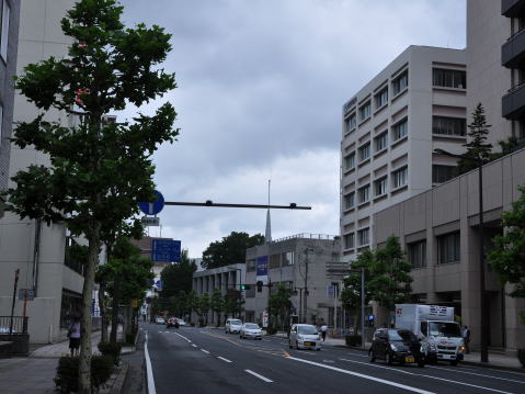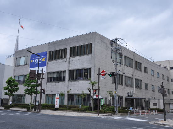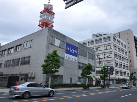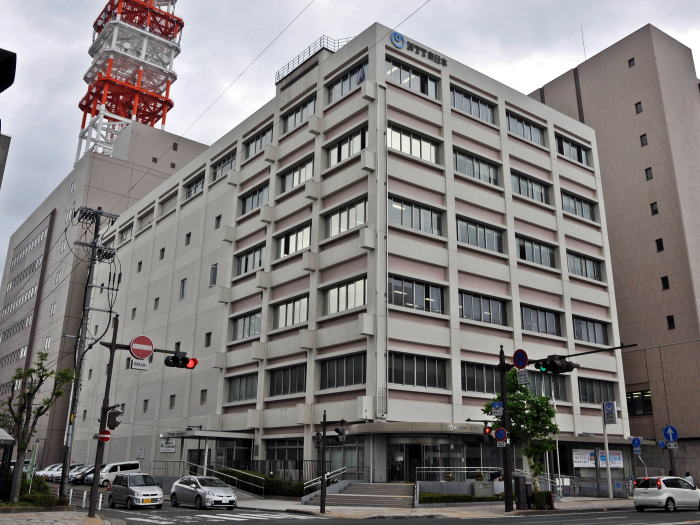 (鉄塔側)と連なる岩手県行政中心地の電話局。