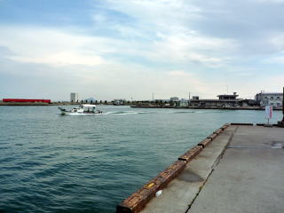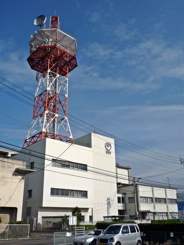 伊予鉄道「郡中駅」から見えた鉄塔と、伊予港。