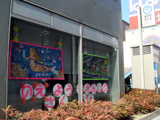 窓口には、地元の幼稚園児の作品が飾られていました。