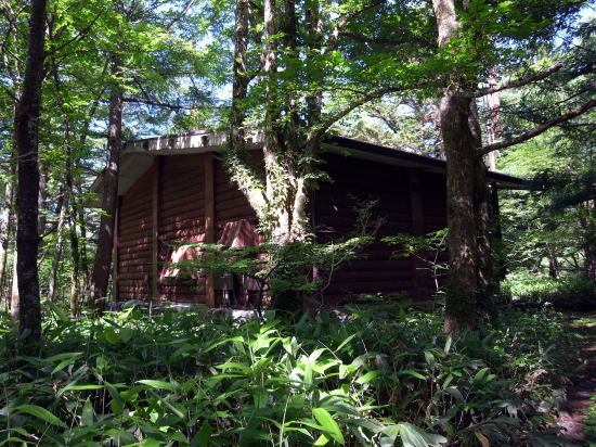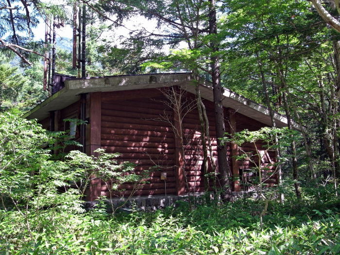 上高地にある山小屋風の電話局。