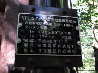 局壁の鉄塔は、ドコモ上高地無線基地局のものでした。