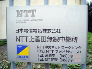 ビルプレート名は「NTT上菅田中継所」(NTT分割前のまま)。