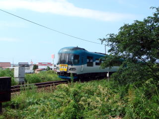 局の前を「北近畿タンゴ鉄道宮津線」が走ります