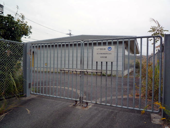 屋根が特徴的な無人プレハブ局舎です。