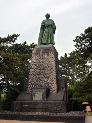 局1km程西にある坂本龍馬生誕地と、桂浜・坂本竜馬像。