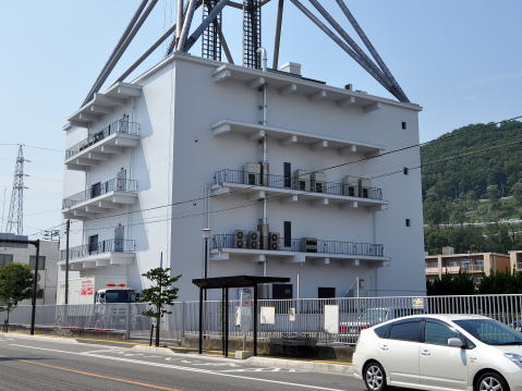 局舎屋上ギリギリ、絶妙なバランスで立つ鉄塔