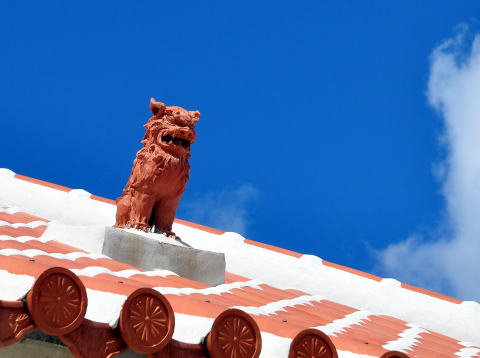 屋根にはシーサーが鎮座。