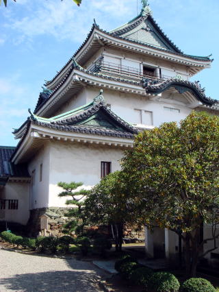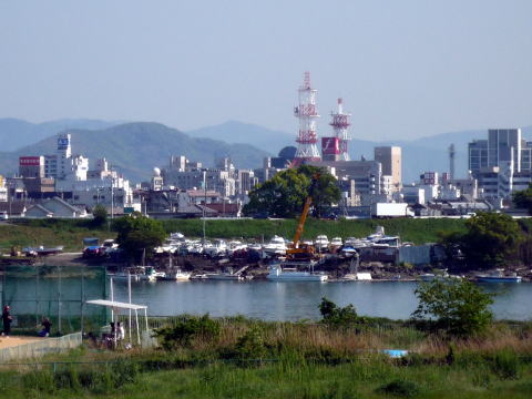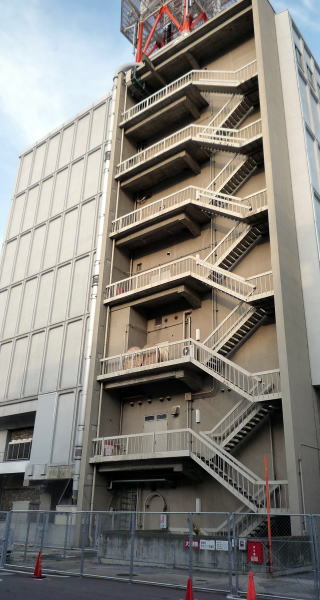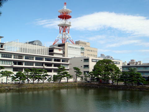 和歌山城のお堀越しに見た公園前ビル(手前鉄塔)