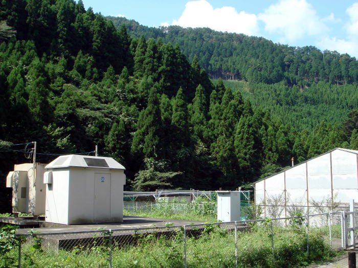 「北山杉」の里にある電話局です。四方を杉林に囲まれています。