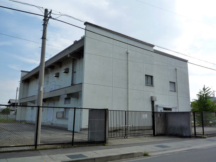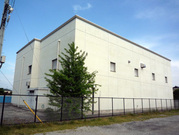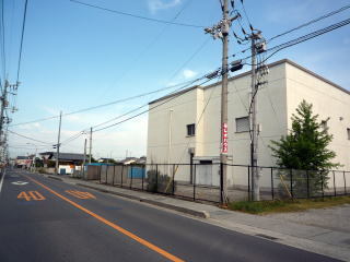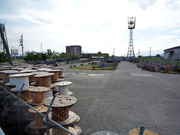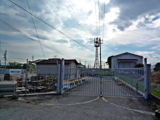 NTTロジスコ松山物流センタ松前倉庫。(鉄塔は、ドコモ松前無線中継所)。