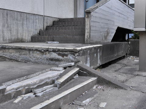 地震の影響と思われる建屋の損壊が一部に見られました。