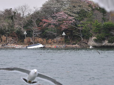 津波の影響で転覆した船や漂着物が打ち上げれていました。