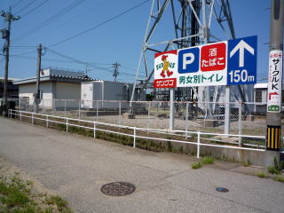 [右] 局敷地内には、コンビニの大きな看板が。