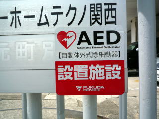 ビルプレートには、「AED(自動体外式除細動器)設置施設」