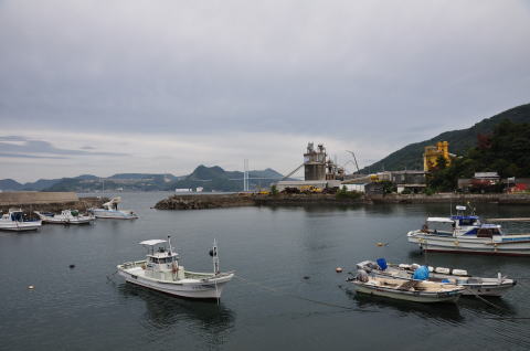 陸揚庫前の小ケ倉港(長崎湾)。