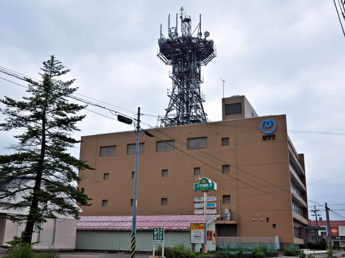 弥彦線・北三条駅ホームから見えた三条ビル