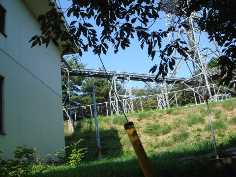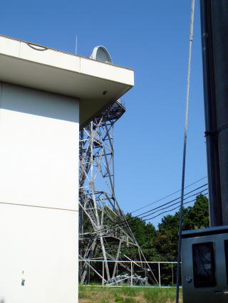 局舎と鉄塔は分離しています。 鉄塔から局舎へつながるラック。