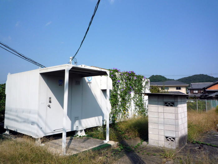 省エネ対策として、「宿根アサガオ」に囲まれた局です。参考:
