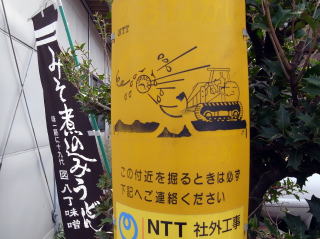 「飲料水」と書かれたNTTタンク。防災用かな?。