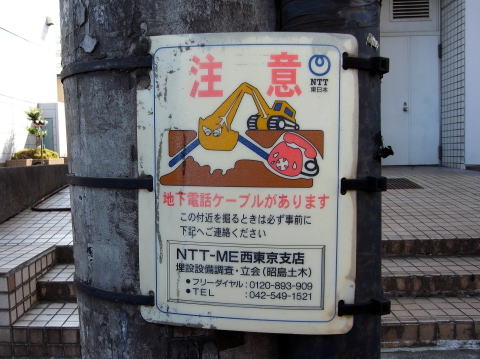 NTT-ME西東京支店と記された注意看板。